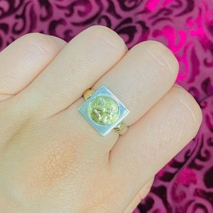 Anillo pyo Virgen niña Cuadrado de Plata y Oro