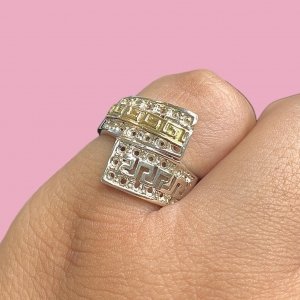 Anillo Sello Cuadrado con Coronas Plata y Oro