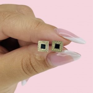 Aritos Guarda Griega cuadrada 7mm con Onix Plata y Oro
