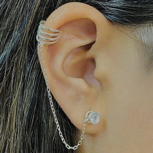 Aro Trepador Cuatro Rayas con Cubic y Cadena de Plata 925