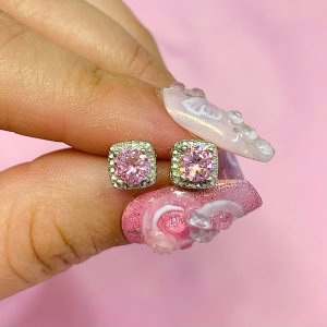Aros Marta Cuadrados con piedra rosa Plata 925