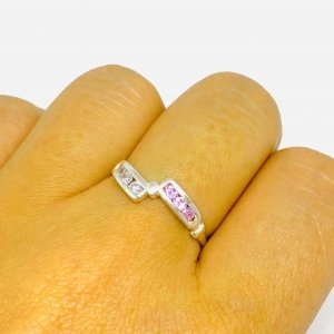 Anillo Rayo con Piedras Rosas de Plata 925