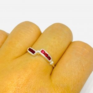 Anillo Rayo con Piedras Rojas de Plata 925