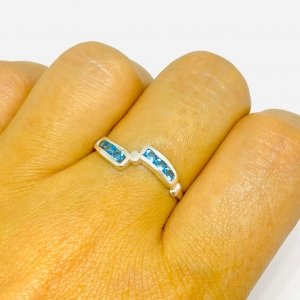 Anillo Rayo con Piedras Aguamarina de Plata 925