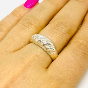 anillo zic zac con cubic Rosa de PLata y Oro