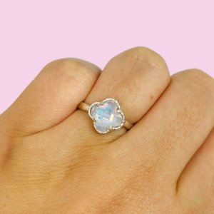 Anillo Trébol Inflado Tornasol Plata 925