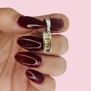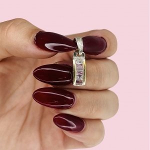 Dije con baguette rubi-blanco 24mm de plata y oro