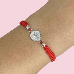 Pulsera Hilo Rojo tejido con dije San Benito y bolitas