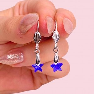 Aros con cubic Estrella 9mm Amatista Laminado de Plata 925