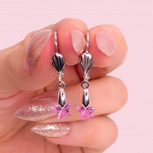 Aros con cubic Estrella 7mm Rosa Laminado de Plata 925