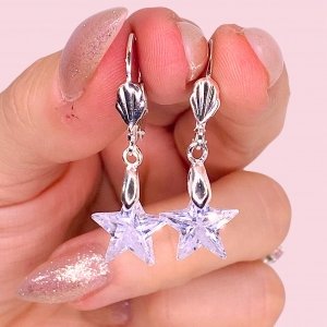 Aros con cubic Estrella 7mm Blanco Laminado de Plata 925