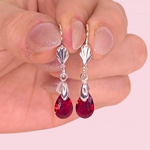 Aros con cubic gota Mini Rubi Laminado de Plata 925