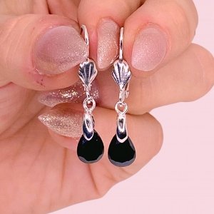 Aros con cubic gota Mini Negro Laminado de Plata 925