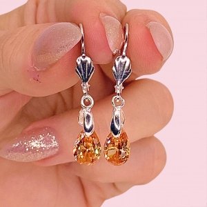 Aros con cubic gota Mini Ambar Laminado de Plata 925