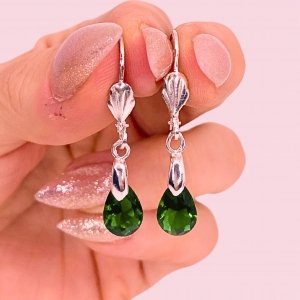 Aros con cubic gota Mini Esmeralda Laminado de Plata 925