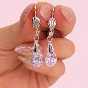 Aros con cubic gota Mini Amatista Laminado de Plata 925