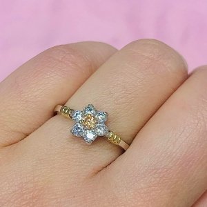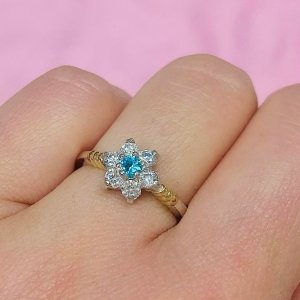 Anillo Roseta Blanco y centro Celeste Plata y Oro