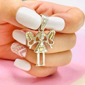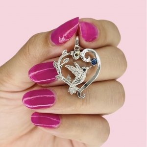 Dije Colibri Corazon de jardin cubic Azul de Plata y Oro
