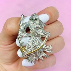 Dije San la muerte con piedras color Esmeralda 46mm Plata y Oro
