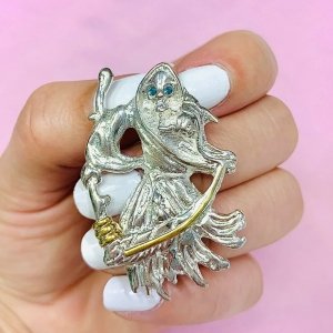 Dije San la muerte con Pierdras agua marina de Plata y Oro