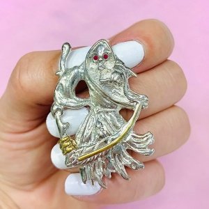 Dije San la muerte con piedras Rubi de Plata y Oro