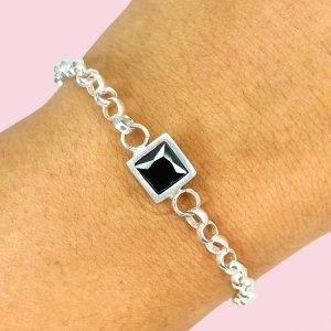 Pulsera rolo con Susanita Cuadrado negro plata 925