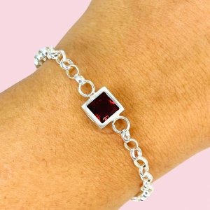Pulsera rolo con Susanita Cuadrado Rubi plata 925