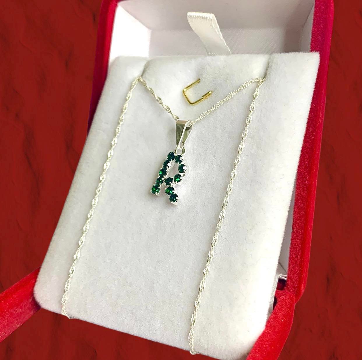 DIJE: R con Strass VERDE (Inicial)