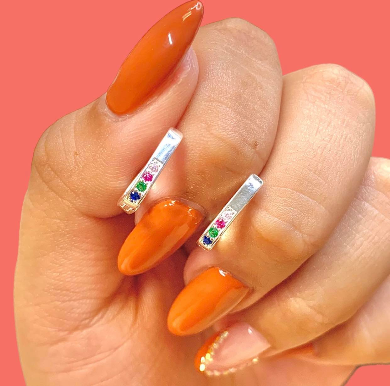 Argollas Huggies con Micropave Multicolor Laminado de Plata 925