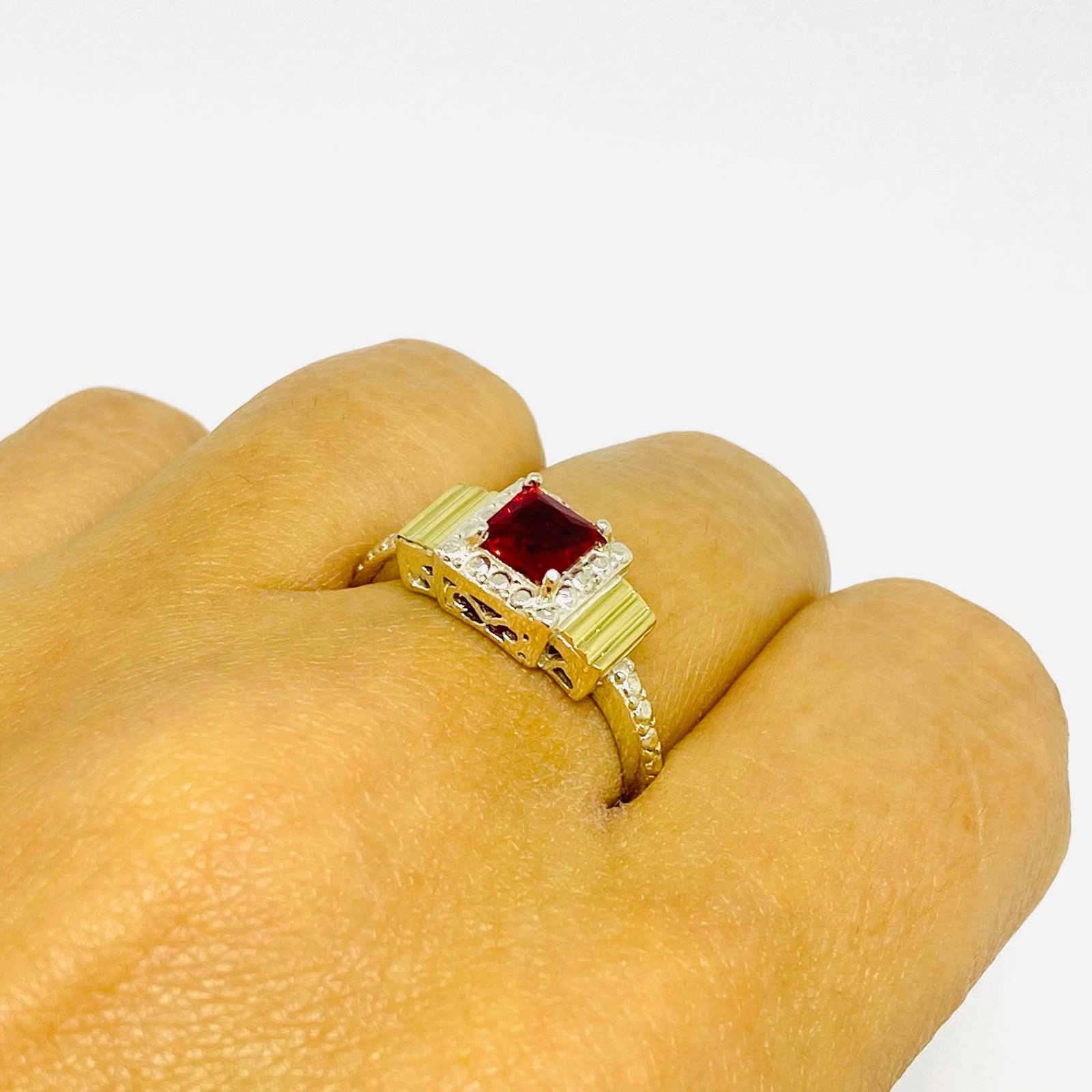 Anillo Solange con cubic Rubi Plata y Oro