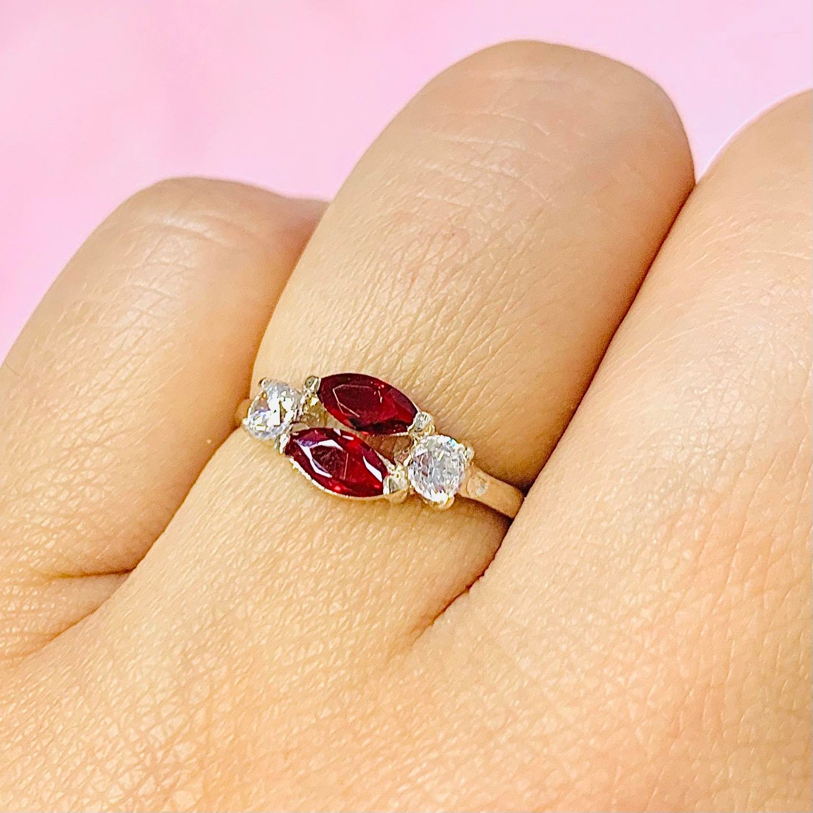 Anillo Fino de 4 piedras Rubi de Plata 925