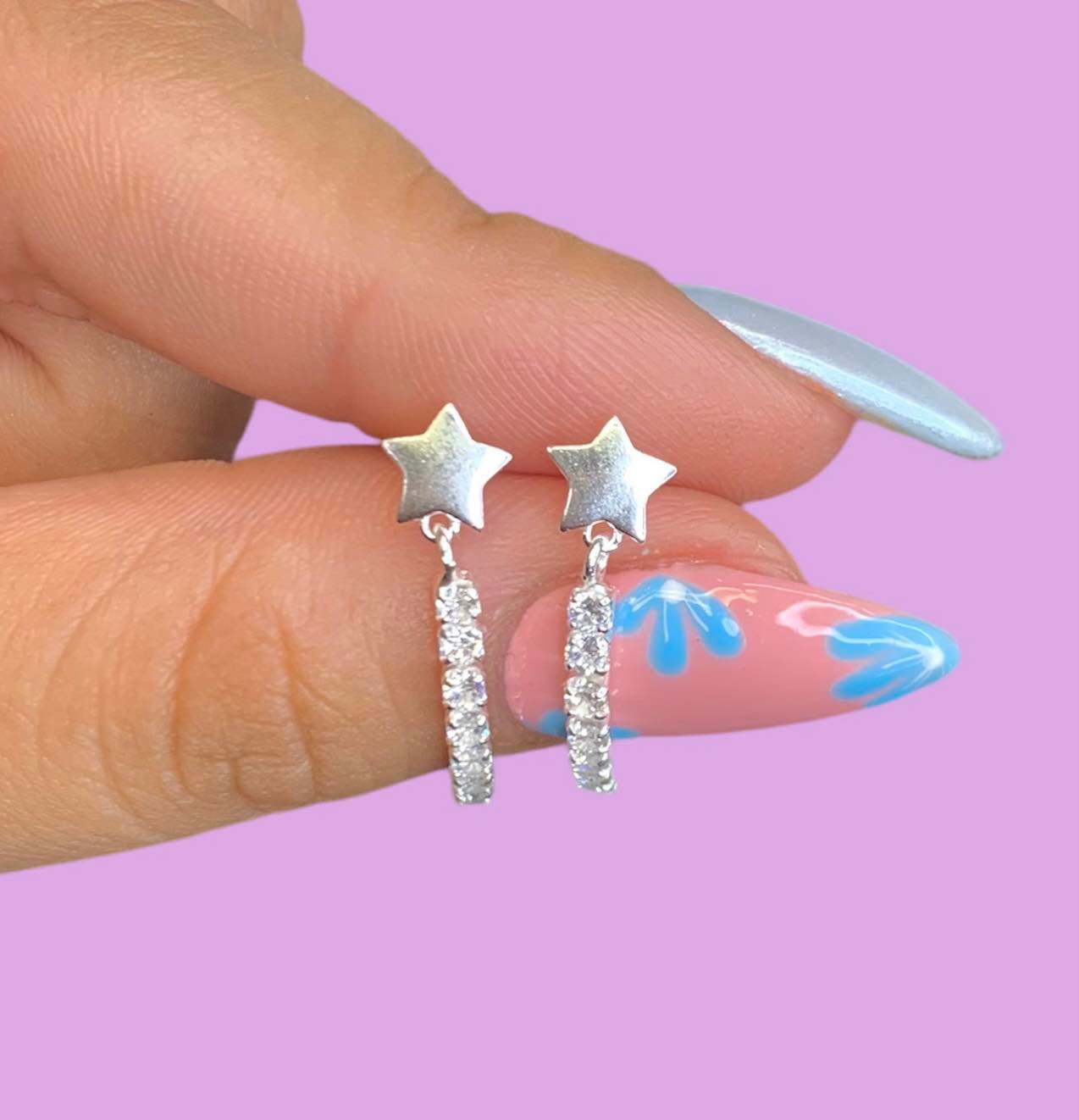 Aros Estrella con Piedras Colgantes de Plata 925