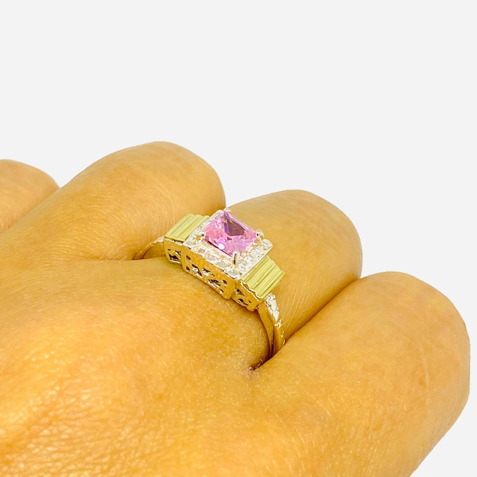 Anillo Solange con cubic Rosa Plata y Oro