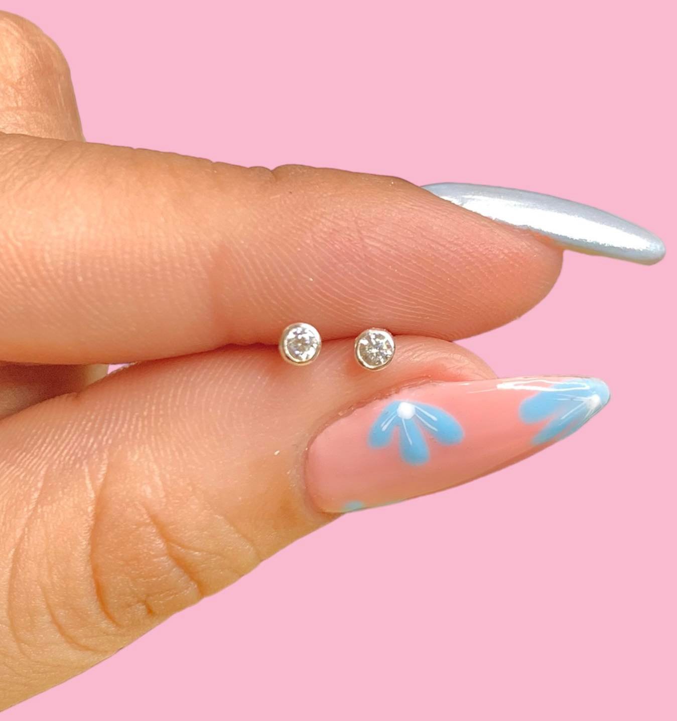 Aros Mini con Cubic 2mm Blanco de Plata 925