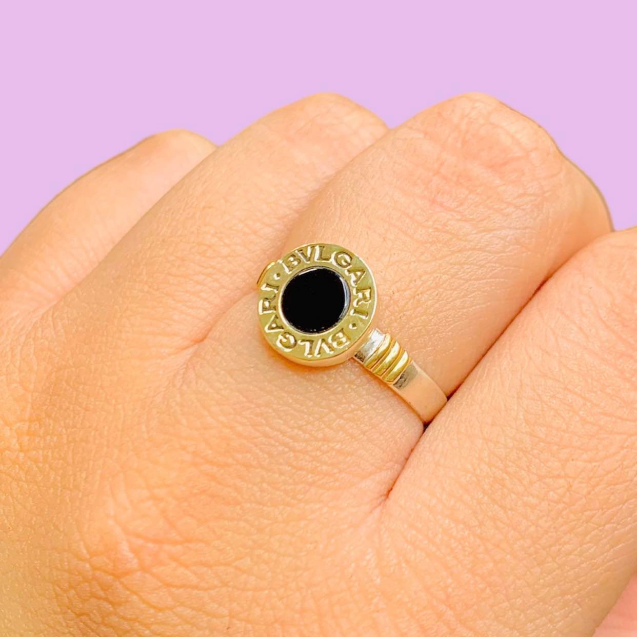 Anillo Bvl Sello Mediano con Onix de Plata y Oro