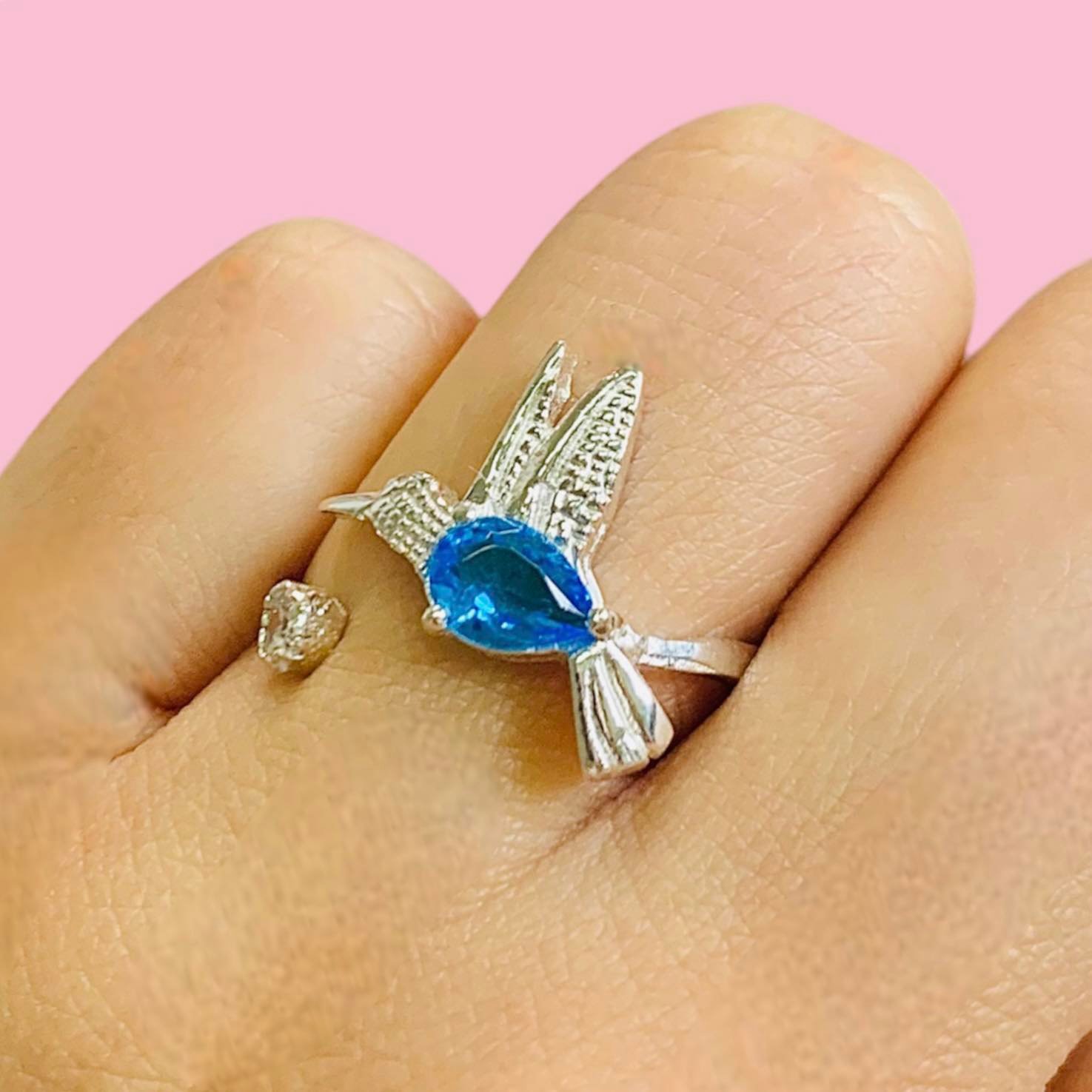 Anillo Colibri con Piedra Aguamarina de Plata 925