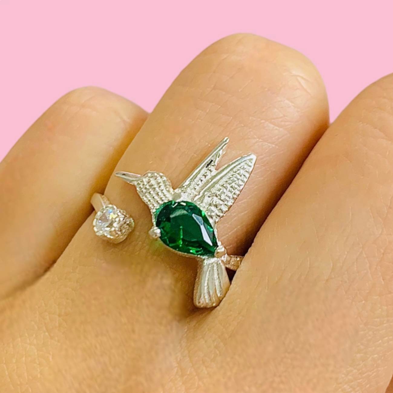 Artículo: AP 398-9Anillo Colibri con Piedra Verde de Plata 925