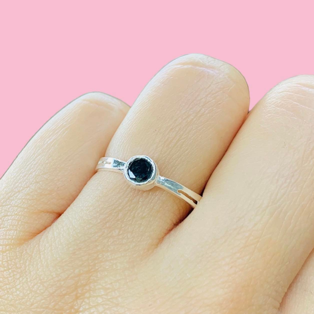 Artículo: AP 384-7Anillo Solitario con Piedra Negra de Plata 925