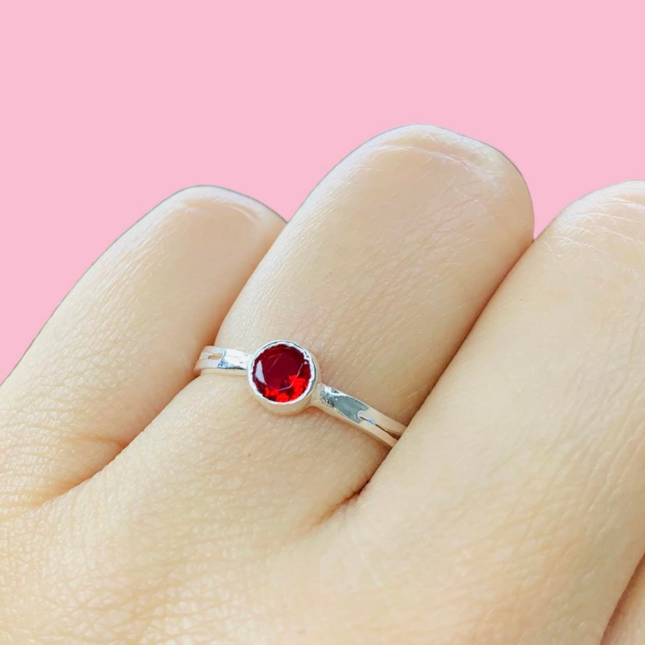 Anillo Solitario con Piedra Rubi de Plata 925
