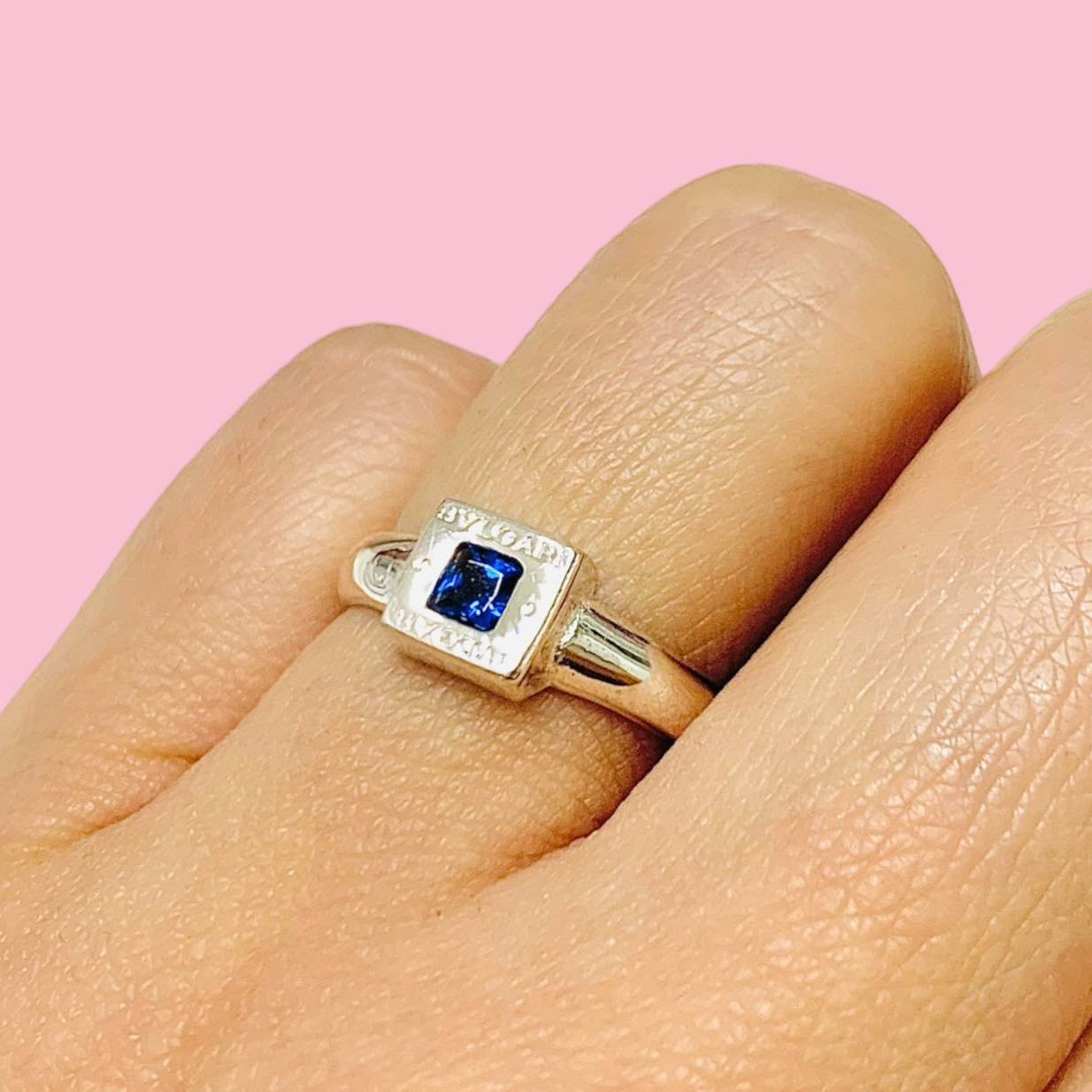 Anillo Bvlgari Cuadrado con Piedra Zafiro de Plata 925