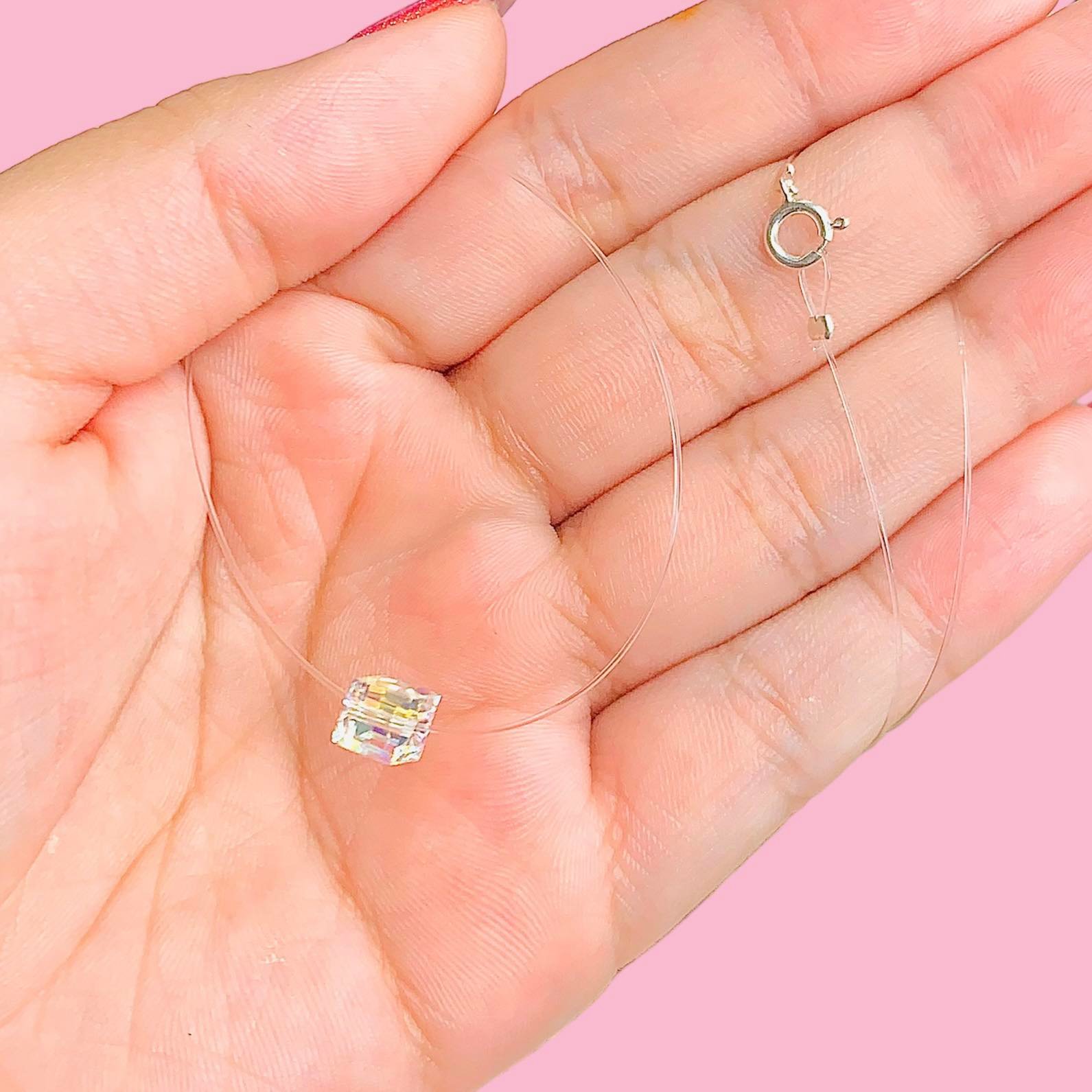 Choker Tanza Invisible Y Dije Swarowski Tornasol CUADRADO