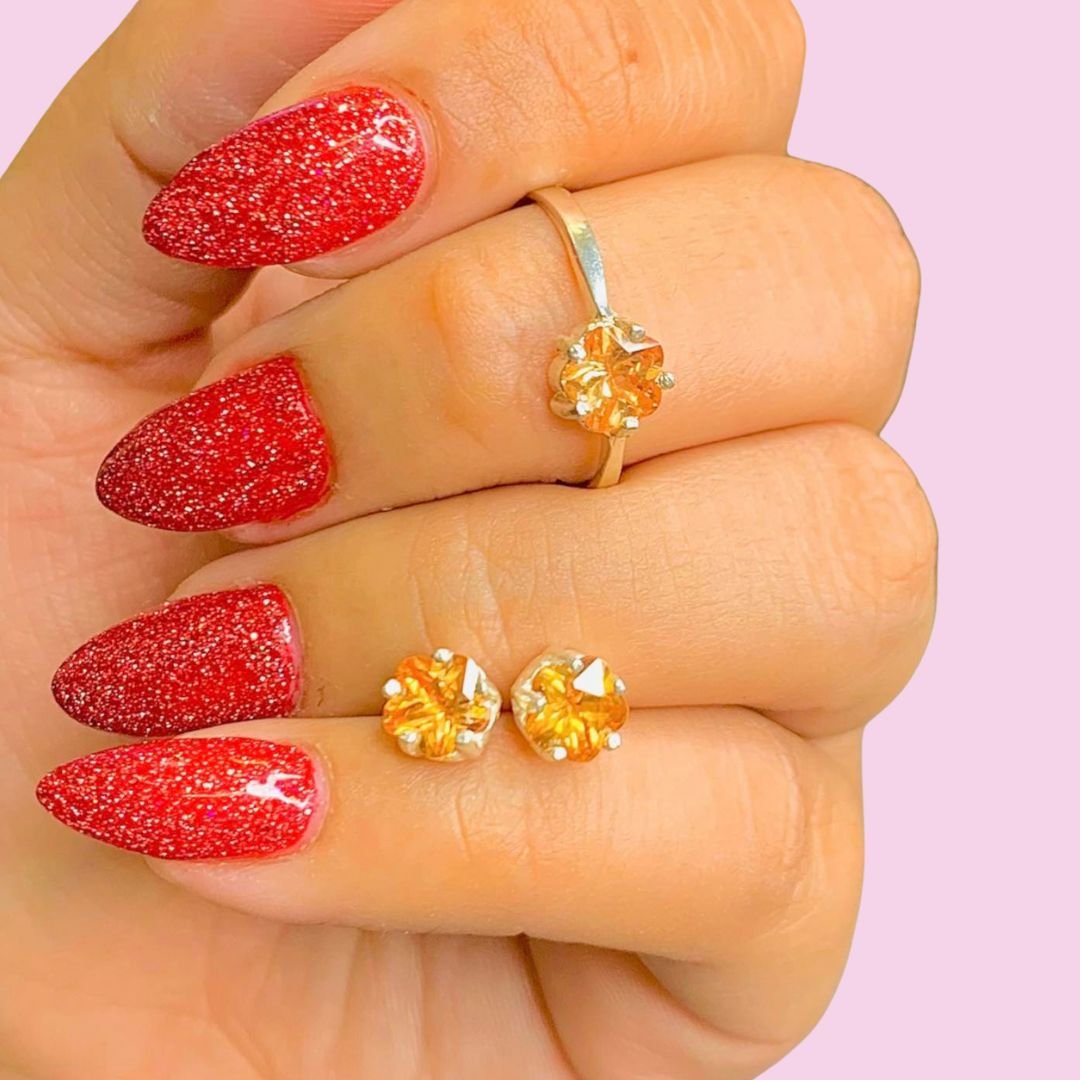Conjunto Anillo con Aros Flor Ambar de Plata 925