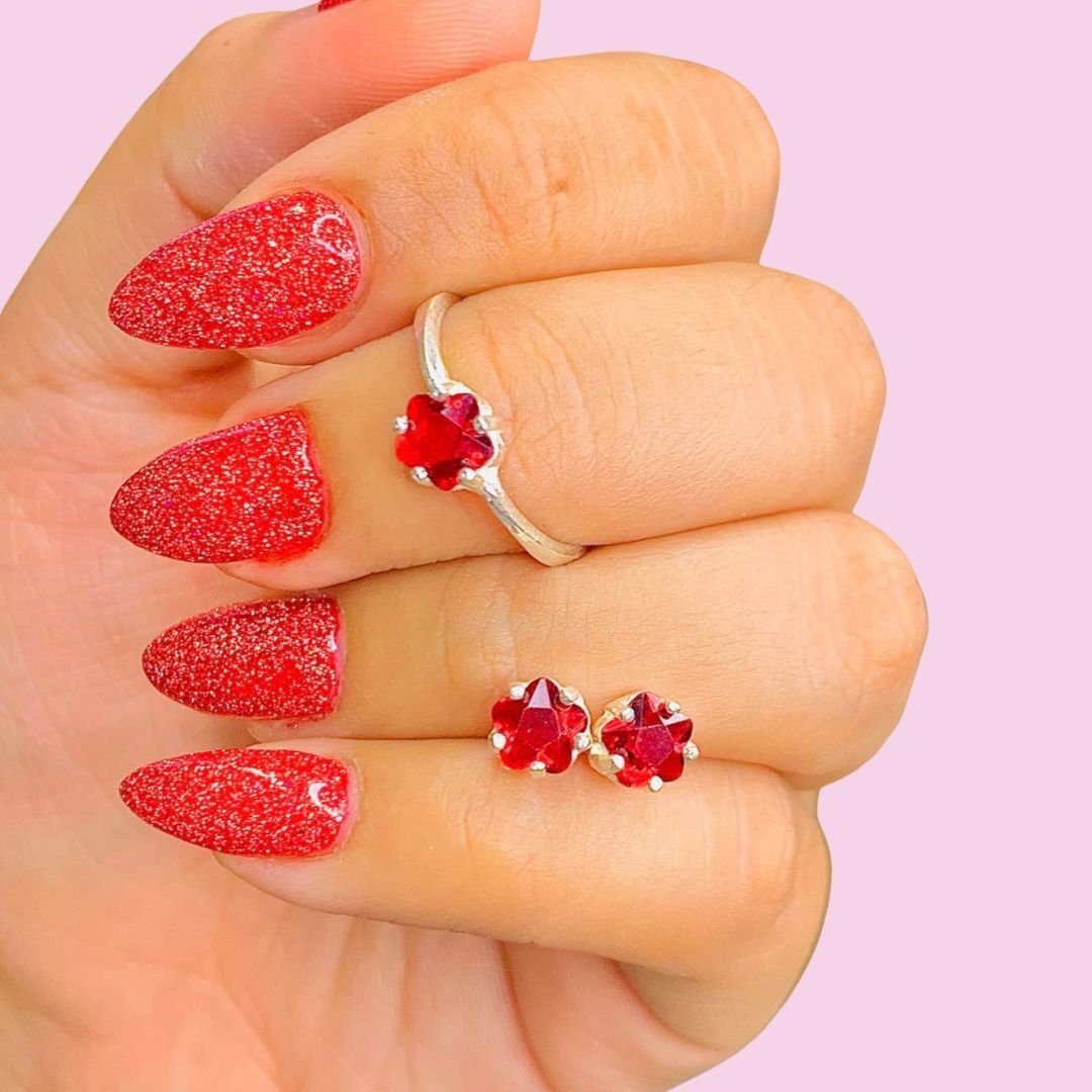 Conjunto Anillo con Aros Flor Rubi de Plata 925