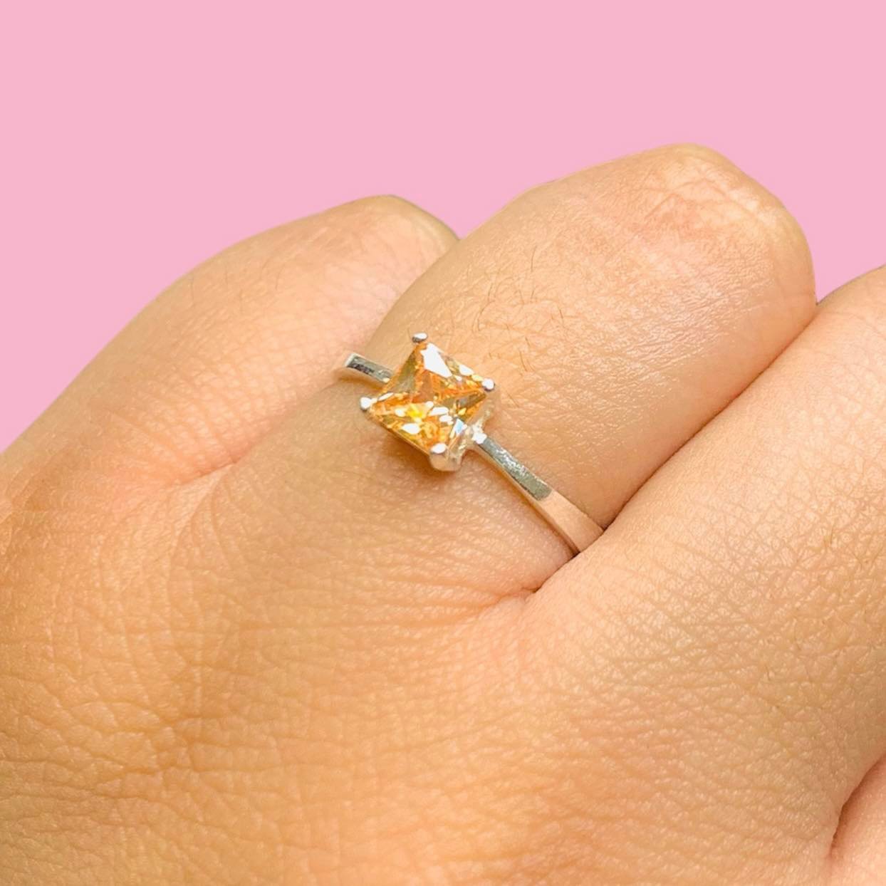Anillo Cubic Cuadrado Ambar de Plata 925