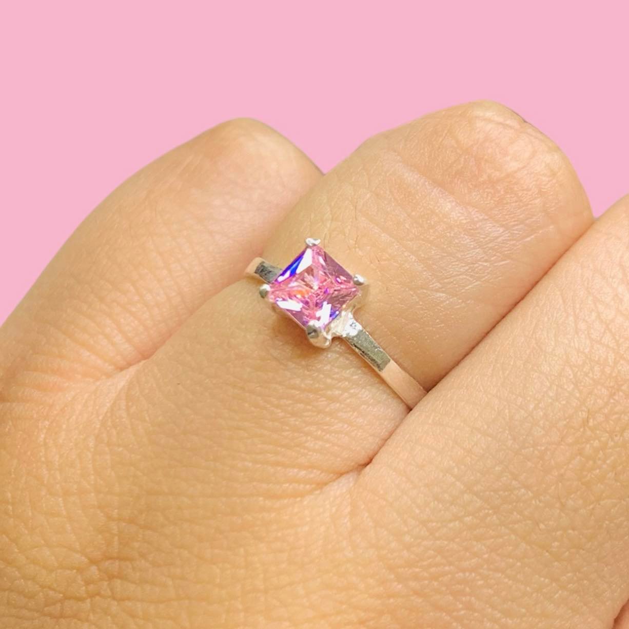 Anillo Cubic Cuadrado Rosa de Plata 925