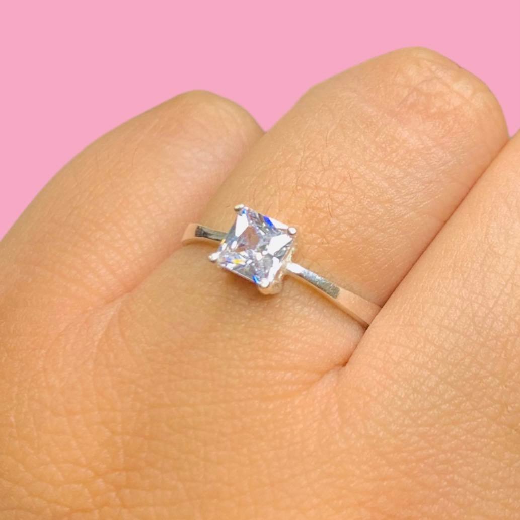 Anillo Cubic Cuadrado Blanco de Plata 925