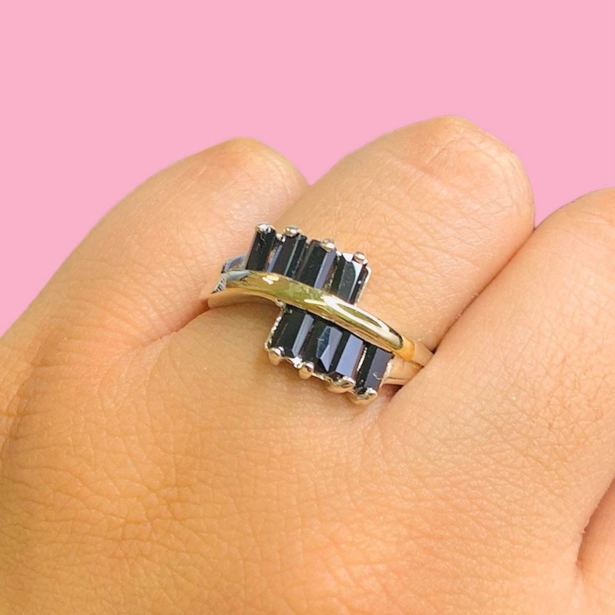 Anillo Avril con Baguette Negro de Plata y Oro