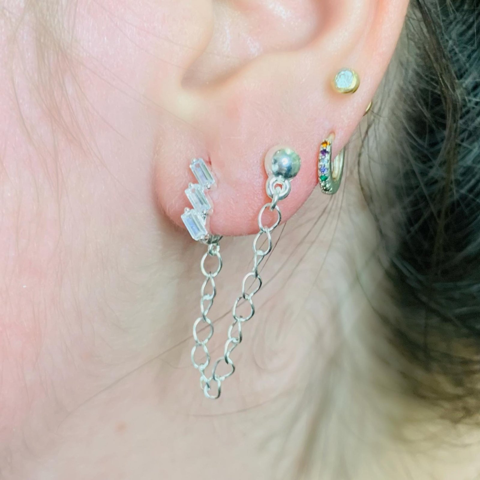 Argolla con Piedras y Aro Bolita con Cadena de Plata 925