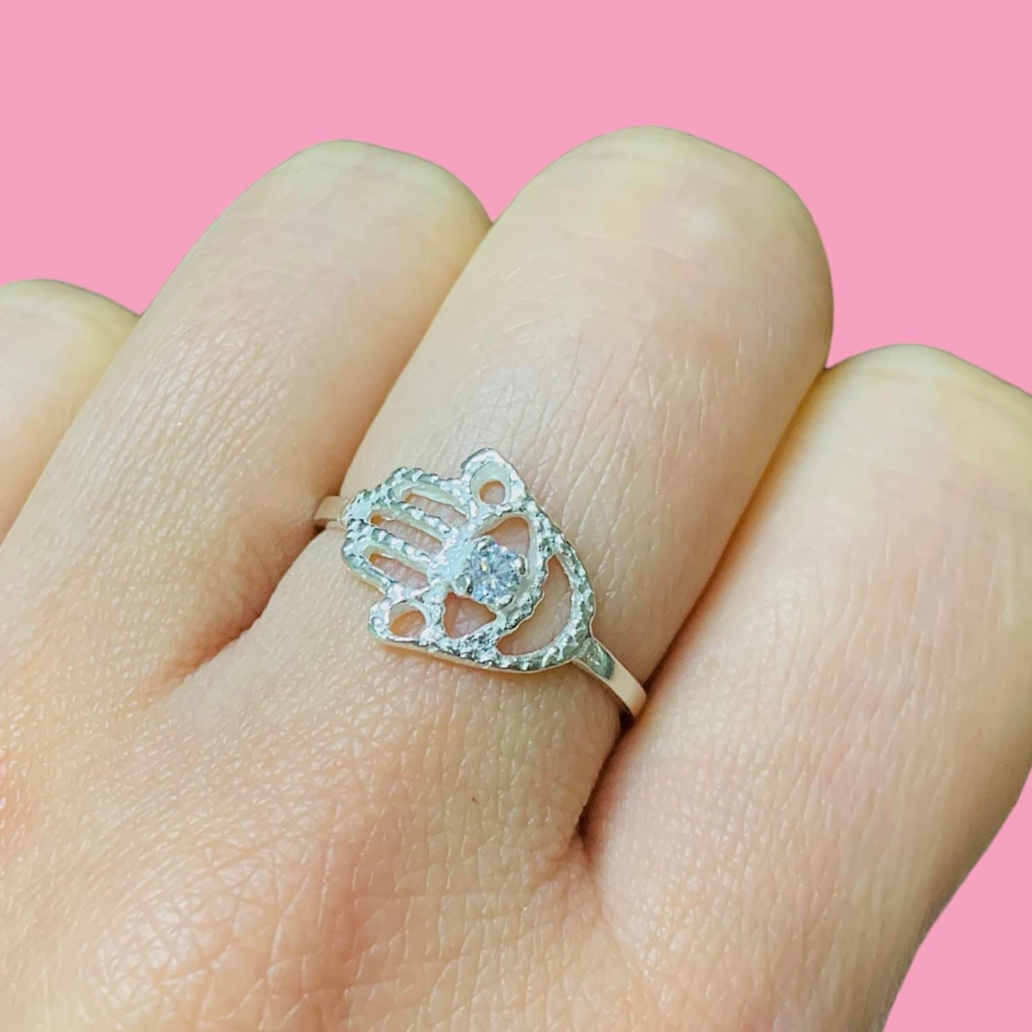 Anillo Mano de Fatima con Piedra Blanca de Plata 925