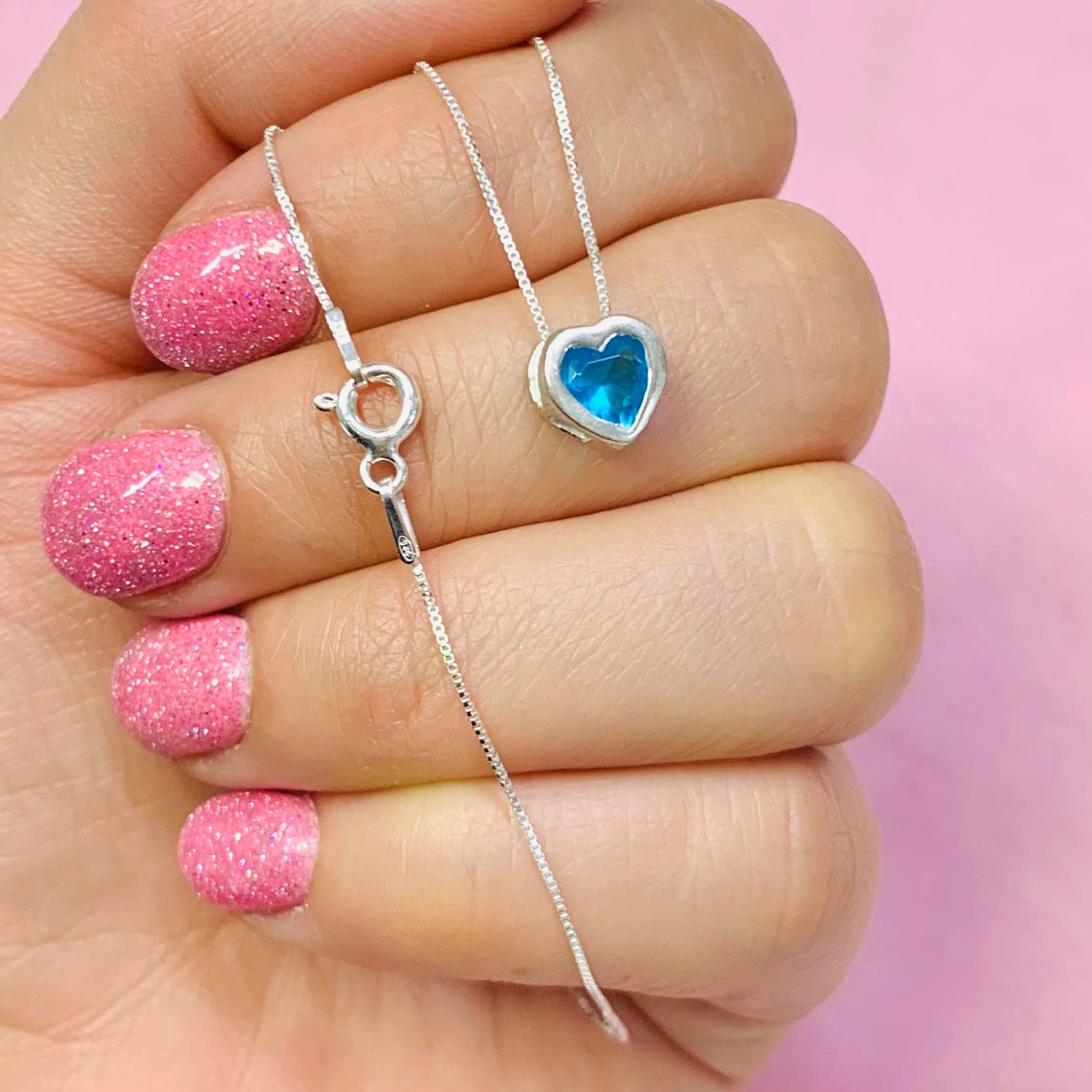 Conjunto Cadena Veneziana fina con Dije Susanito Corazon Celeste 8mm de Plata 925
